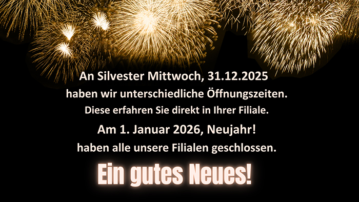 Unsere Filialen sind an gesetzlichen Feiertagen geschlossen.