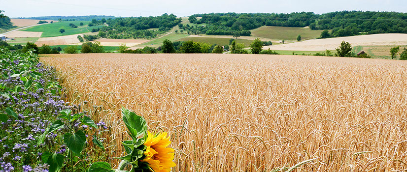 Eine Besonderheit unserer Äcker sind die Ackerrandstreifen, welche bei jedem Feld mit angepflanzt werden. Auf diesen Blumenwiesenstreifen werden Lebensräume und Nahrungsquellen für Tiere und Nützlinge geschaffen. Durch das Bestäuben der Marienkäfer, Bienen und anderen Insekten entsteht eine natürliche Regulierung, die im Gegenzug Schädlinge am Getreide verhindern.